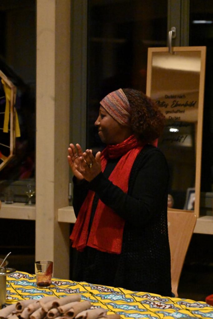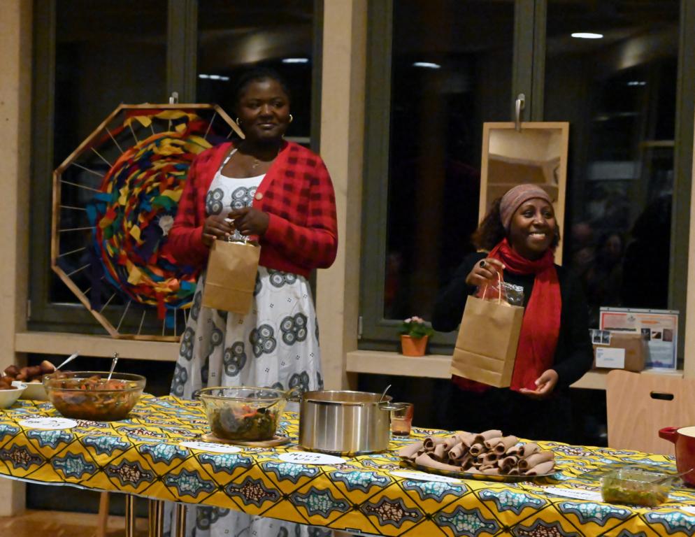 Höhepunkt des Abends war ganz eindeutig der kulinarische Teil des Abends. Es gab einen tosenden Applaus für die vier Köchinnen, die Köstlichkeiten aus Mosambik, Äthiopien, Kamerun und Marokko anboten.