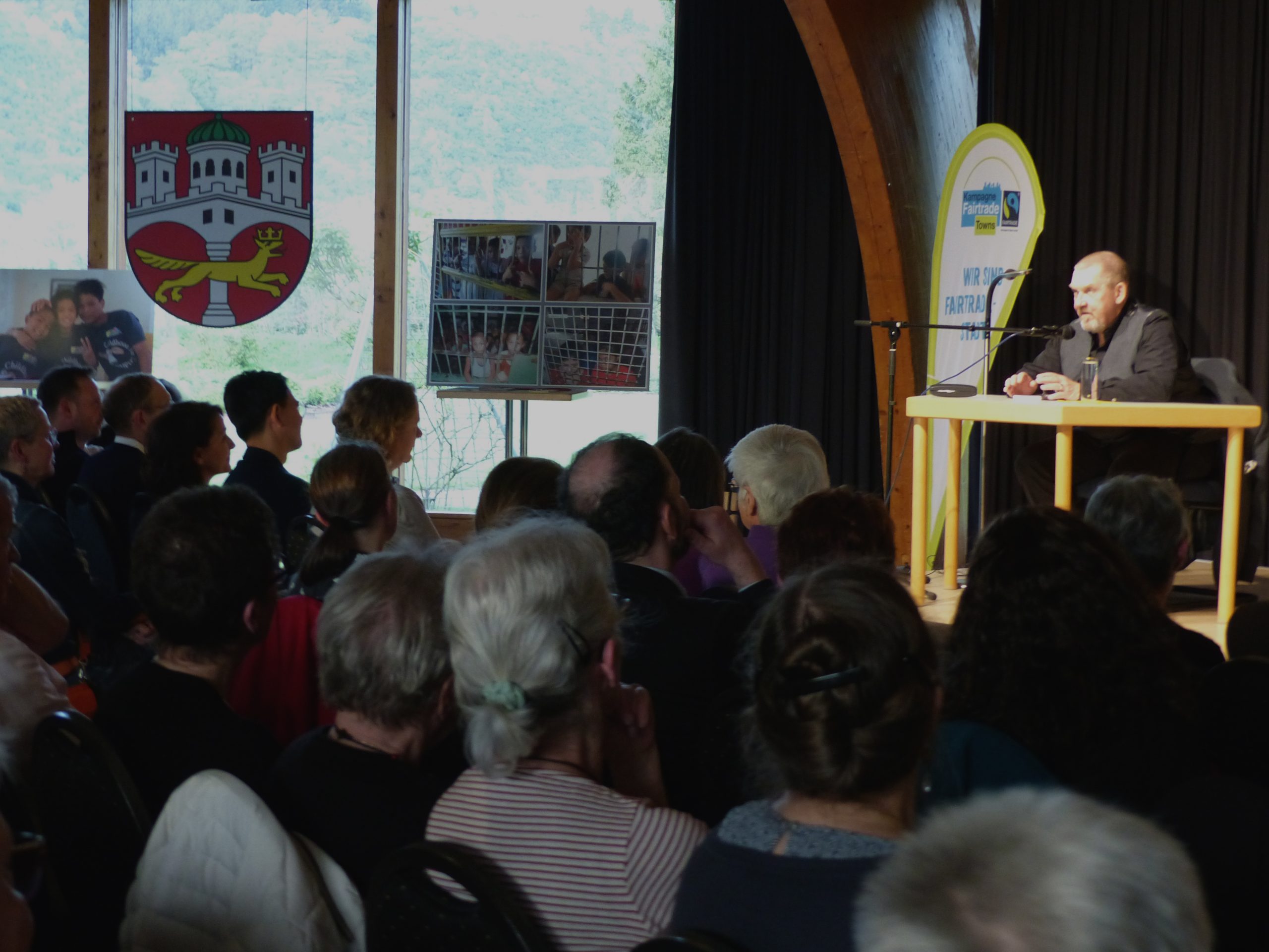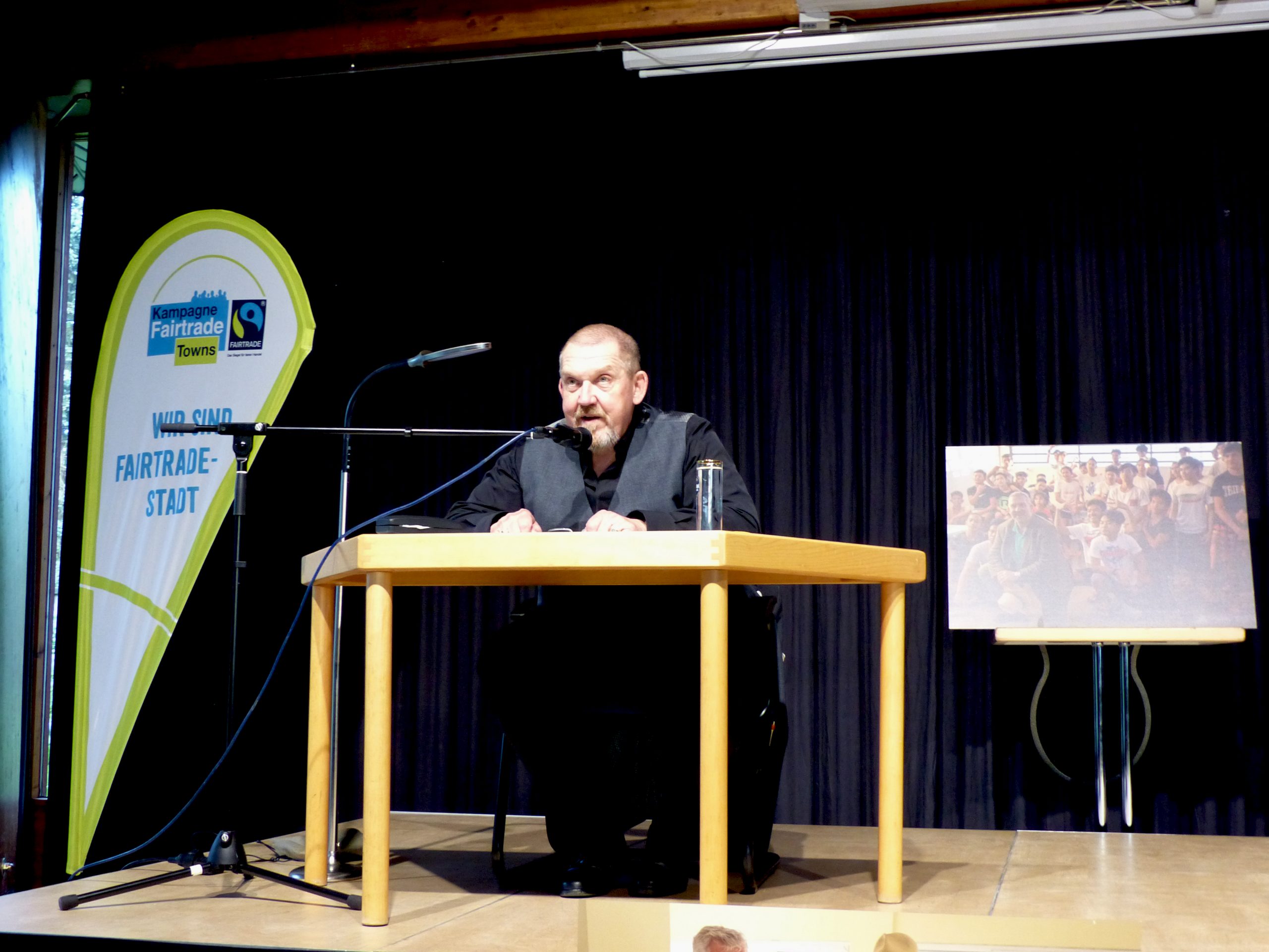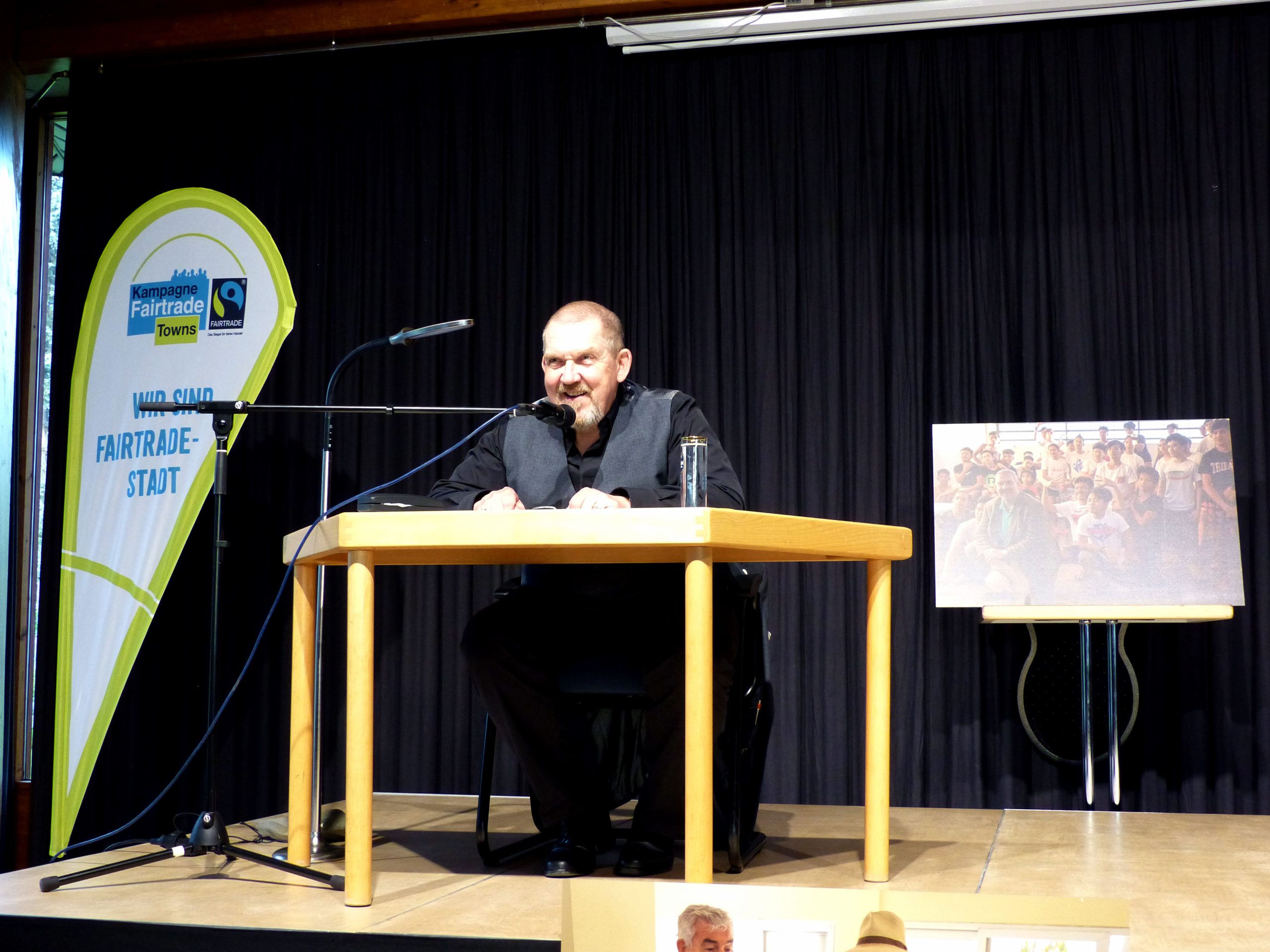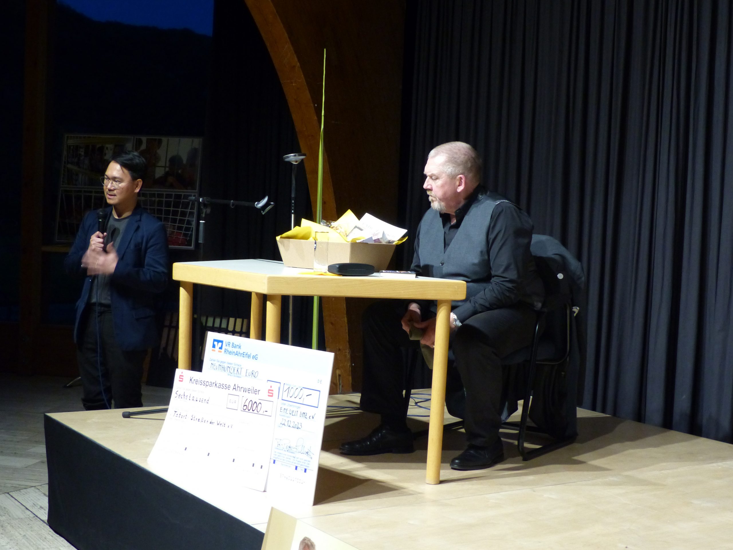 Möglich gemacht wurde dieser Abend vom Weltladen Remagen-Sinzig sowie der Fairtrade Gruppe Remagen. Nach der Lesung überreichten der Weltladen Linz, die Buchhandlung Geber und der Weltladen Remagen-Sinzig Spendenschecks für das Jubiläumsprojekt des Tatortvereins „Mango Tango“. Mehr als 7.000 Euro kamen zusammen. Dietmar Bär und der Vorstand des Vereins Tatort – Straßen der Welt e. V. freuten sich sehr über diese stattliche Summe.