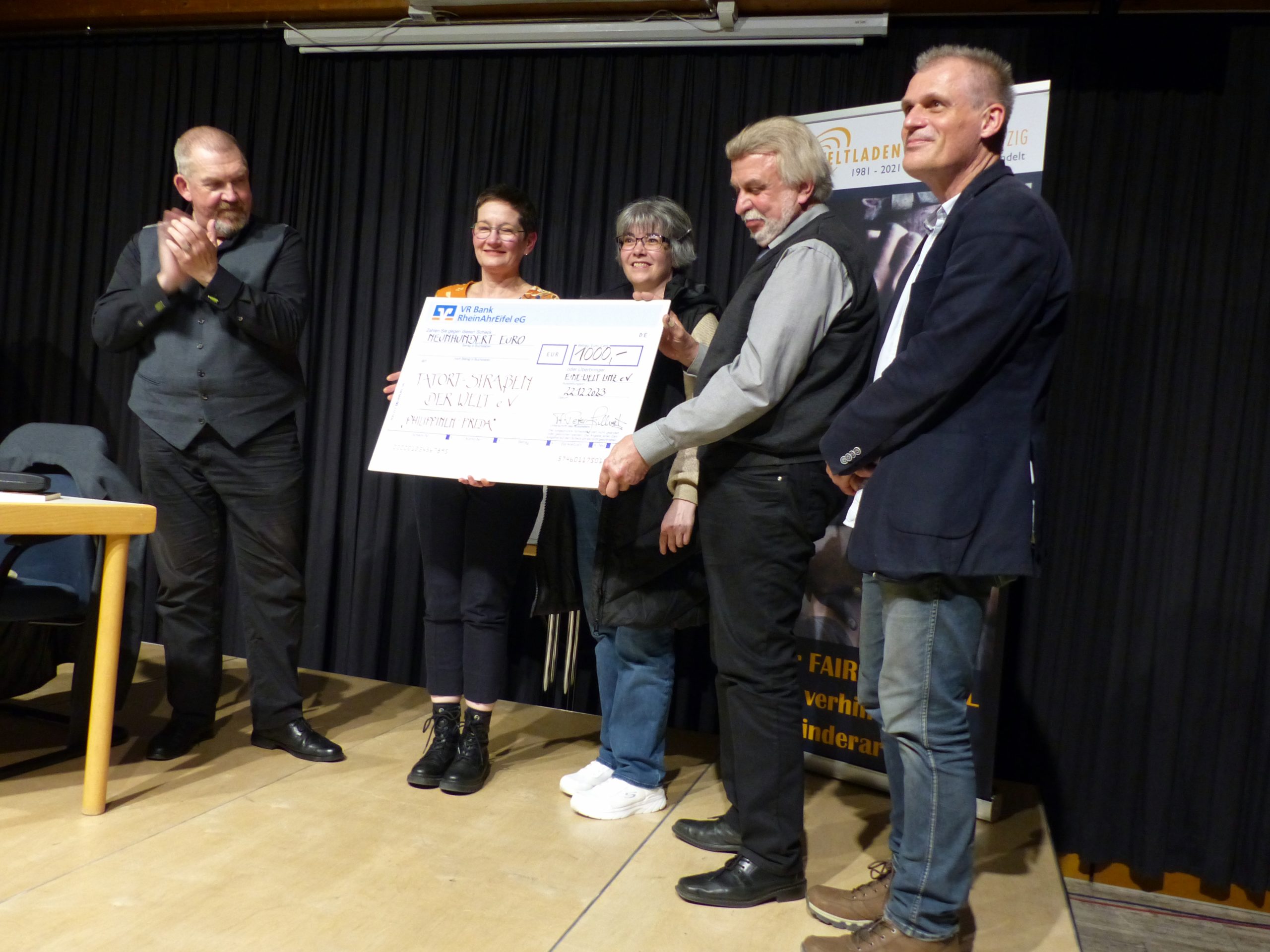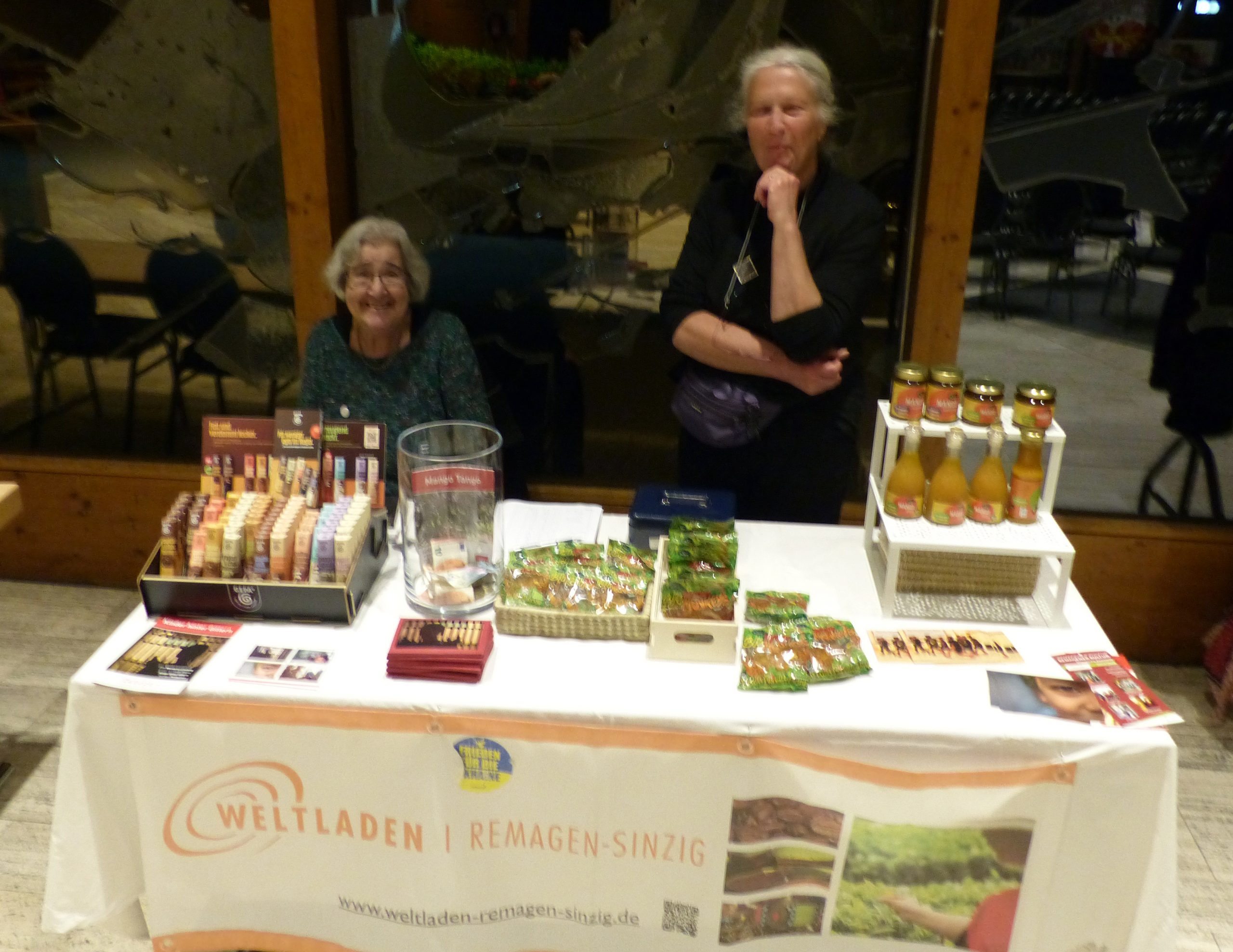 Besonderer Dank gilt außerdem Elke und Udo Grub für ihren engagierten Akquise von Spenden sowie dem Einzelhandelsverein „Remagen mag ich“. Die Sprecherinnen des Weltladens Walburga Greiner und Silke Olesen danken außerdem den Aktiven aus dem Weltladenteam für diesen gelungenen Abend!