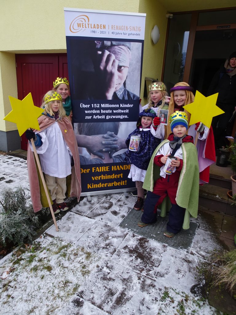 Der Weltladen unterstützte diese Aktion der Sternsinger mit einer Spende – für eine gerechte Welt, in der Kinder nicht arbeiten müssen.